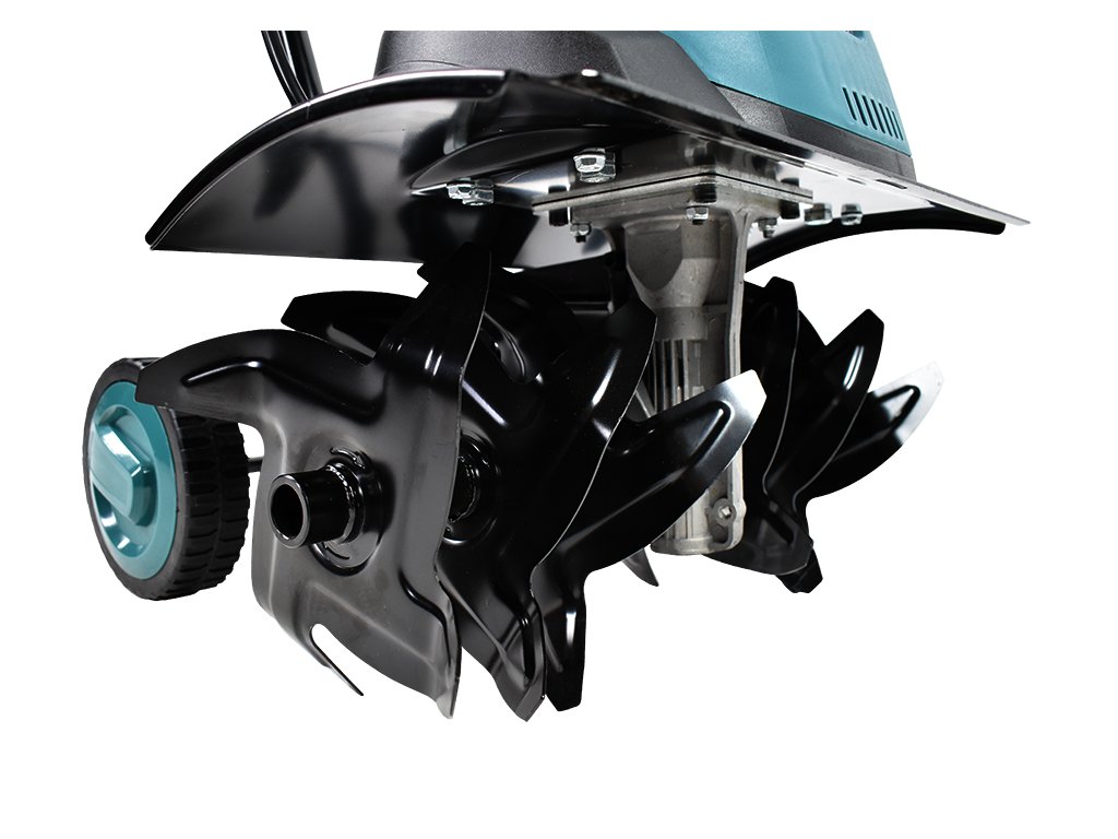 Vysoká pevnost kovu prodlužuje životnost kultivátoru a dokáže zpracovat i tvrdou půdu.