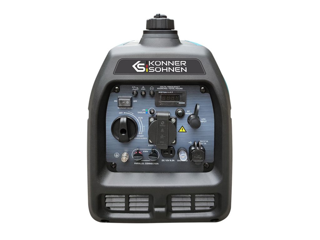 Invertorový generátor na LPG/benzín KS 3100iG S německé značky „Könner & Söhnen“ v odhlučněném krytu slouží jako pohodlný, přenosný a tichý zdroj energie. Hlavní vlastností tohoto modelu je, že poskytuje čistou sinusovou vlnu elektrické energie.