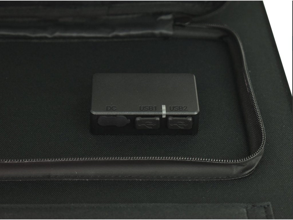 Díky skládacímu provedení v praktické velikosti se solární nabíječka snadno přenáší jednou rukou. Zařízení má v rozích dva otvory s očky pro snadné připevnění k batohům, stromům nebo stanům pomocí karabin. Nabíjená zařízení lze uložit do kapsy se zipem a udržet je tak v bezpečí a čistotě. Vzhledem k tomu, že solární nabíječku lze provozovat v částečně rozloženém stavu, lze ji používat i ve stísněných prostorách nebo na cestách.