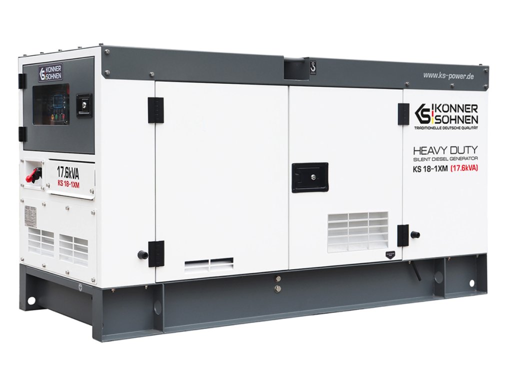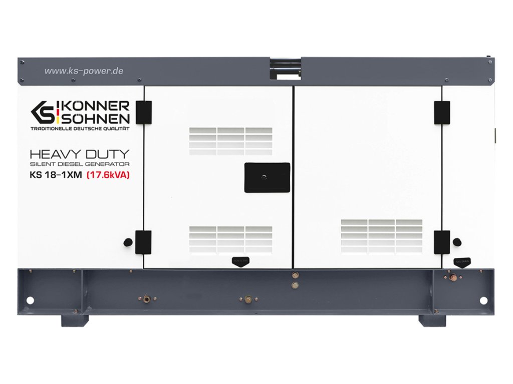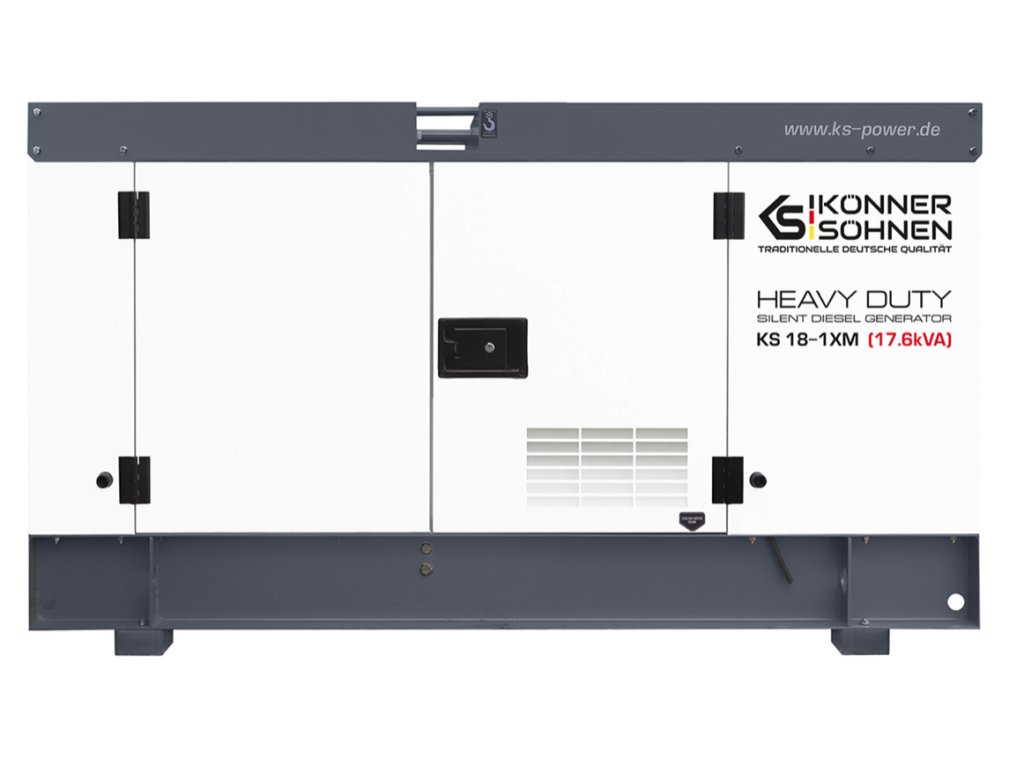 Jednofázová dieselová elektrocentrála KS 18-1XM řady HEAVY DUTY německé značky "Könner & Söhnen" je spolehlivý generátor elektrické energie s maximálním výkonem 17,6 kVA.