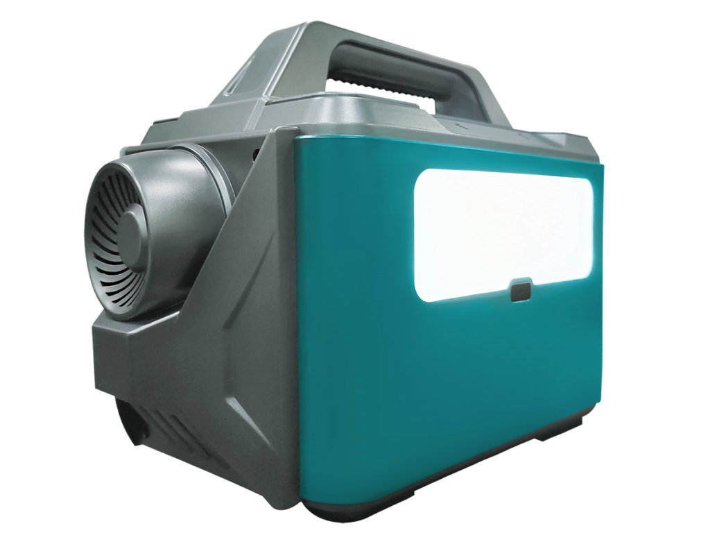Přístroj je vyroben z robustního plastu ABS, materiálu s vysokou odolností proti nárazu a pružností, což zajišťuje trvanlivé a pohodlné používání. Je vybavena vestavěným ventilátorem pro účinný odvod tepla a optimální chlazení. Rukojeť pro přenášení usnadňuje přenášení a umístění.