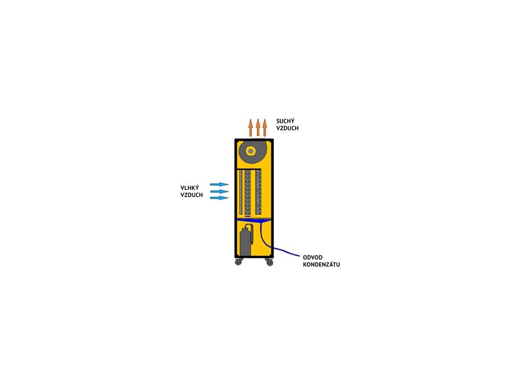 Výkonný profesionální mobilní odvlhčovač vzduchu s odvlhčovacím výkonem 166,8l / 24hod, kovové provedení, robustní a odolná konstrukce.