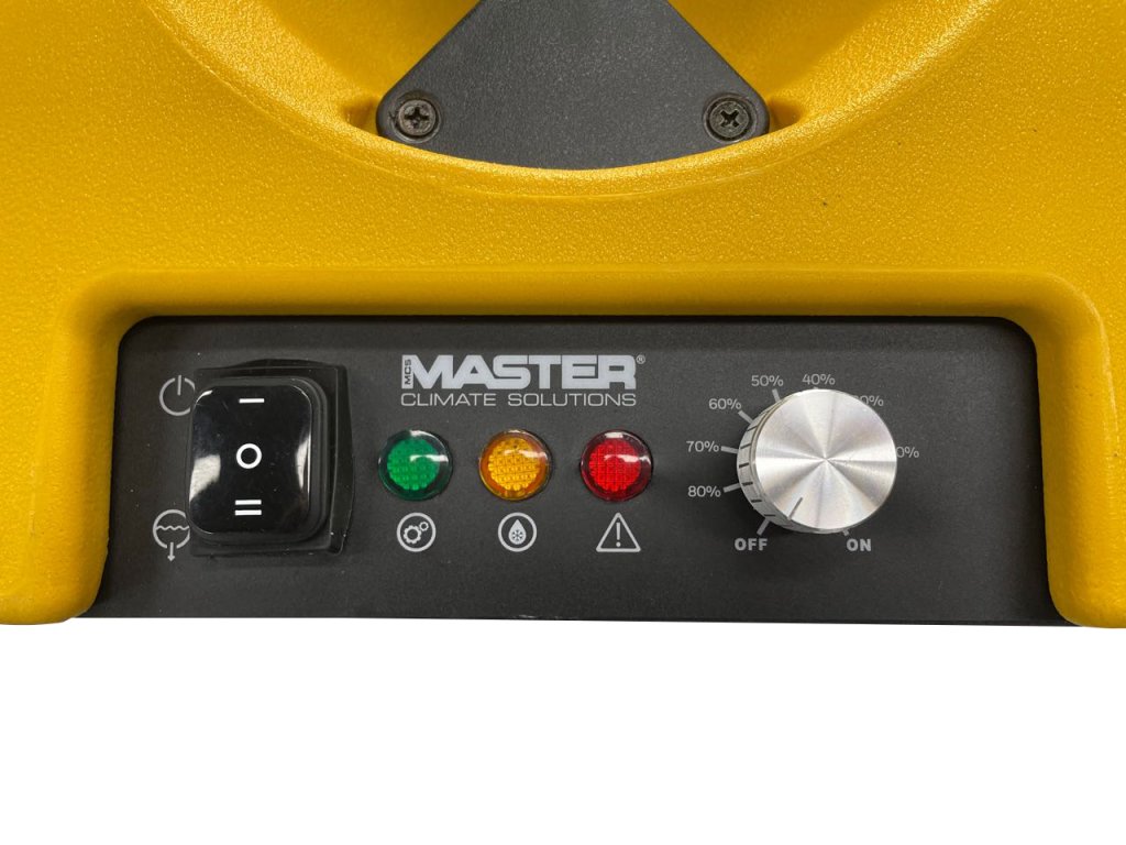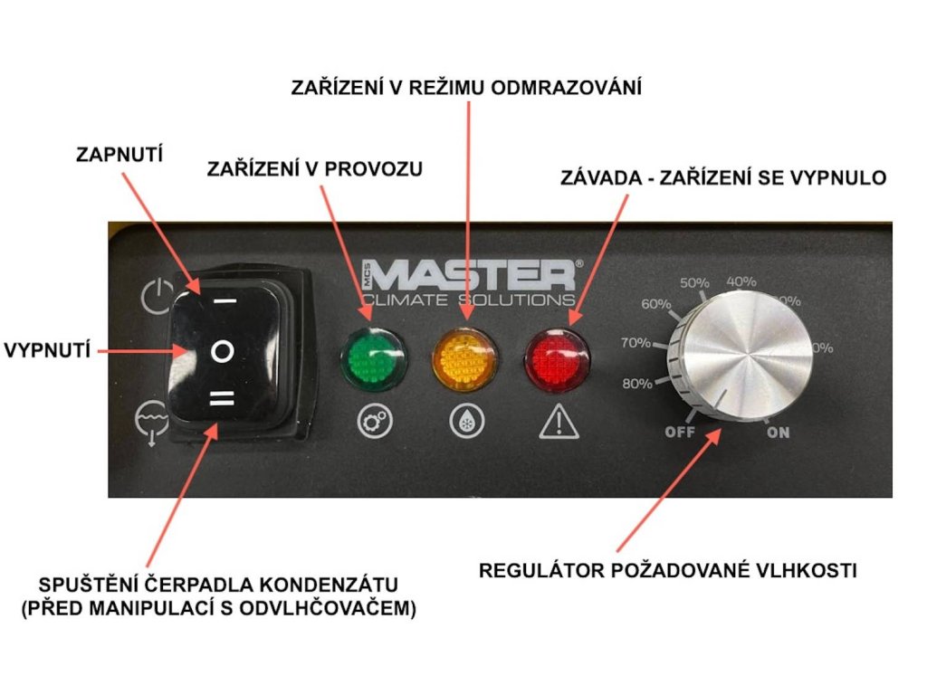 - Díky vestavěnému čerpadlu kondenzátu s výtlakem až 6 metrů a dodávané 6m hadici je zařízení plně připraveno na nepřetržitý provoz bez nutnosti ručního vylévání vody. Ovládání zajišťuje jednoduchý otočný volič hygrostatu pro nastavení požadované vlhkosti. Počítadlo motohodin umožňuje sledovat provozní čas zařízení, což ocení zejména profesionálové v pronájmu či servisu.