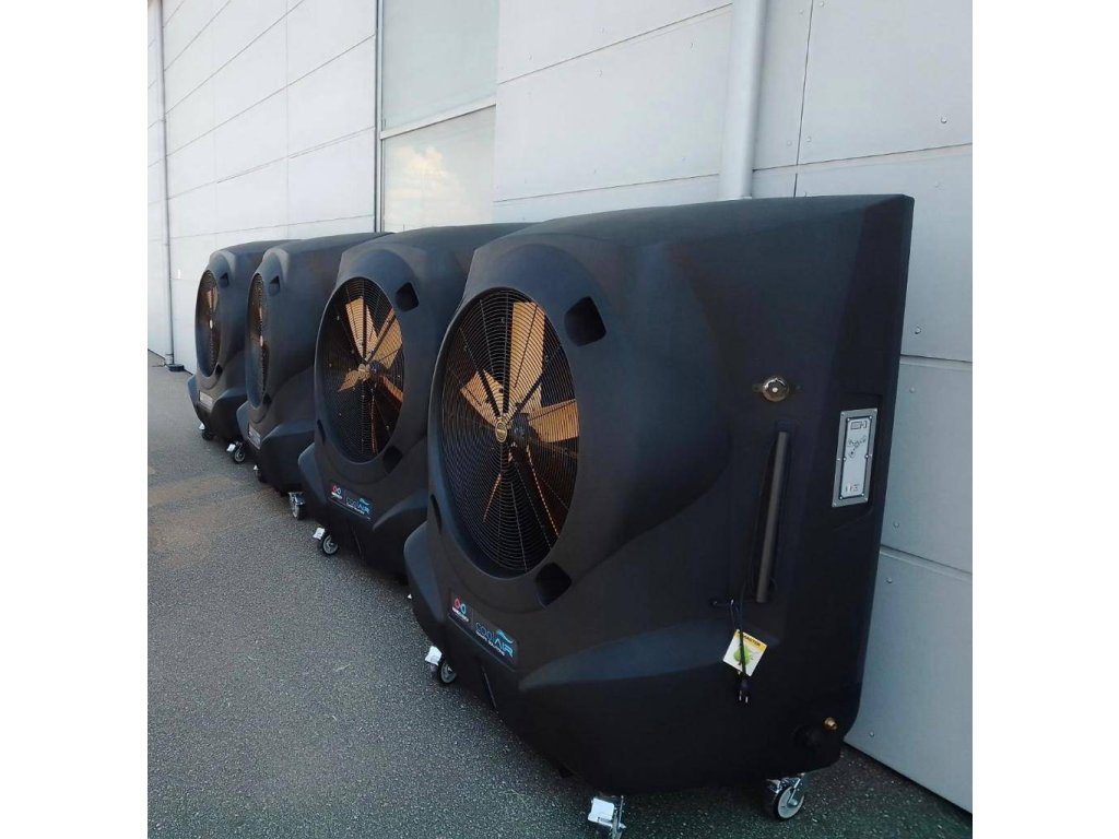 - Vysoká účinnost chlazení: Schopnost ochladit prostory až do 400 m² díky výkonu 30 000 m³/h.