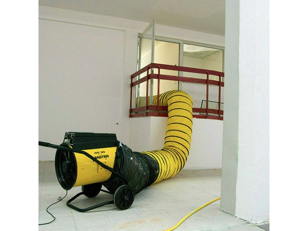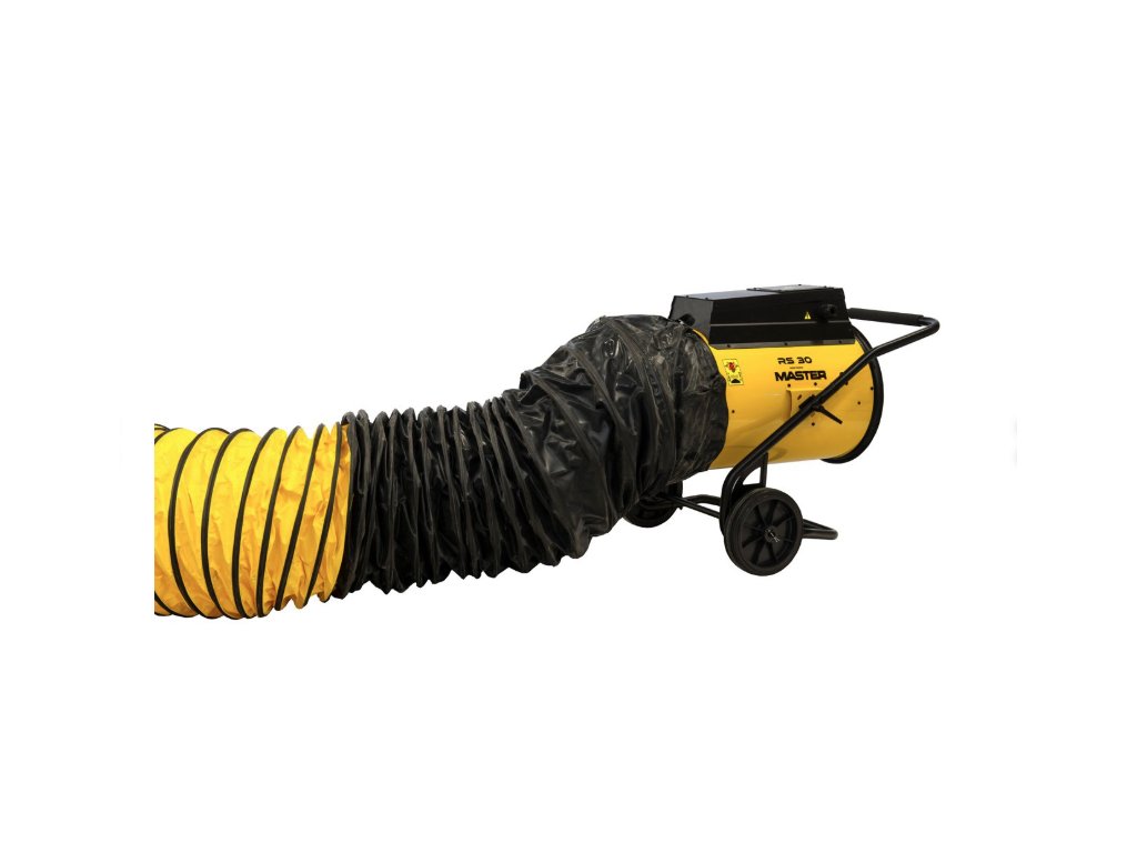 Mezi hlavní přednosti elektrického topidla Master RS 40 patří možnost připojení pružné hadice o délce 7,6 m (průměr 508 mm), která rozšiřuje využití i pro prostory se zvýšeným nebezpečím požáru. První dva metry hadice (černé barvy) jsou vyrobeny se speciálního materiálu odolného vůči teplotám až 150 °C. Součástí hadice je stahovací páska.