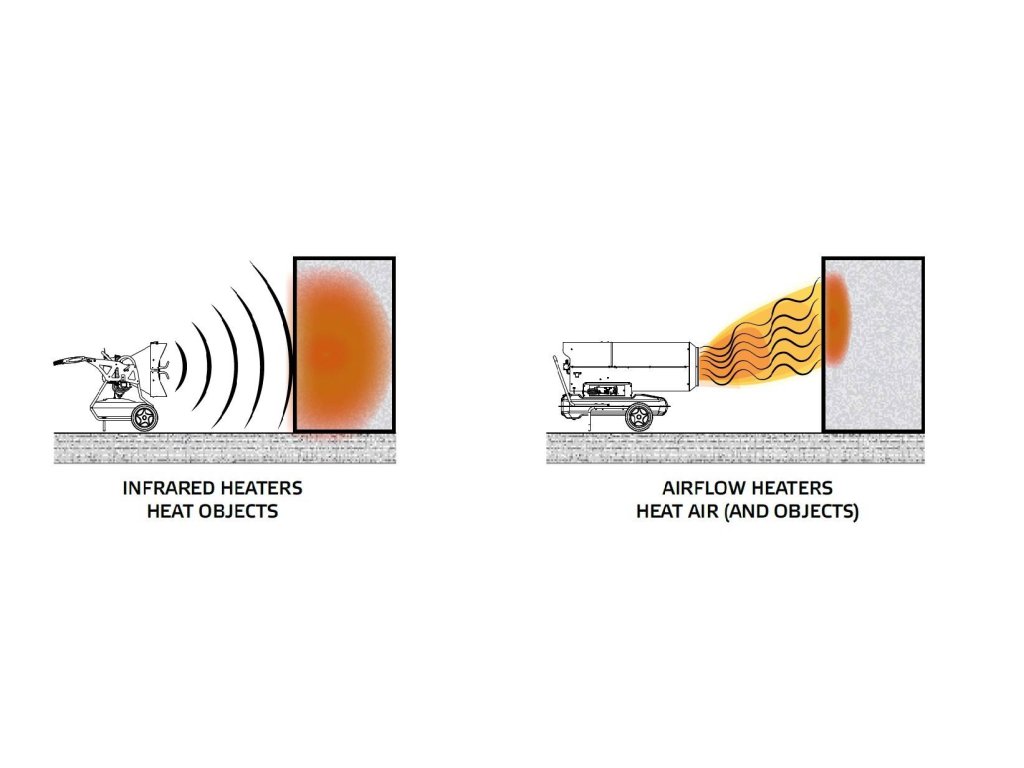 Krátkovlnné infračervené záření ohřívá předměty bez zahřátí okolního vzduchu, podobně jako je zahřívá slunce. Zahřáté předměty (či stěny) sálají teplo a ohřívají další objekty v okolí. Infračervené záření ohřívá pomocí mlhy nebo větru. Infračervené záření proudí rovně, zatímco ohřátý vzduch stoupá vzhůru.