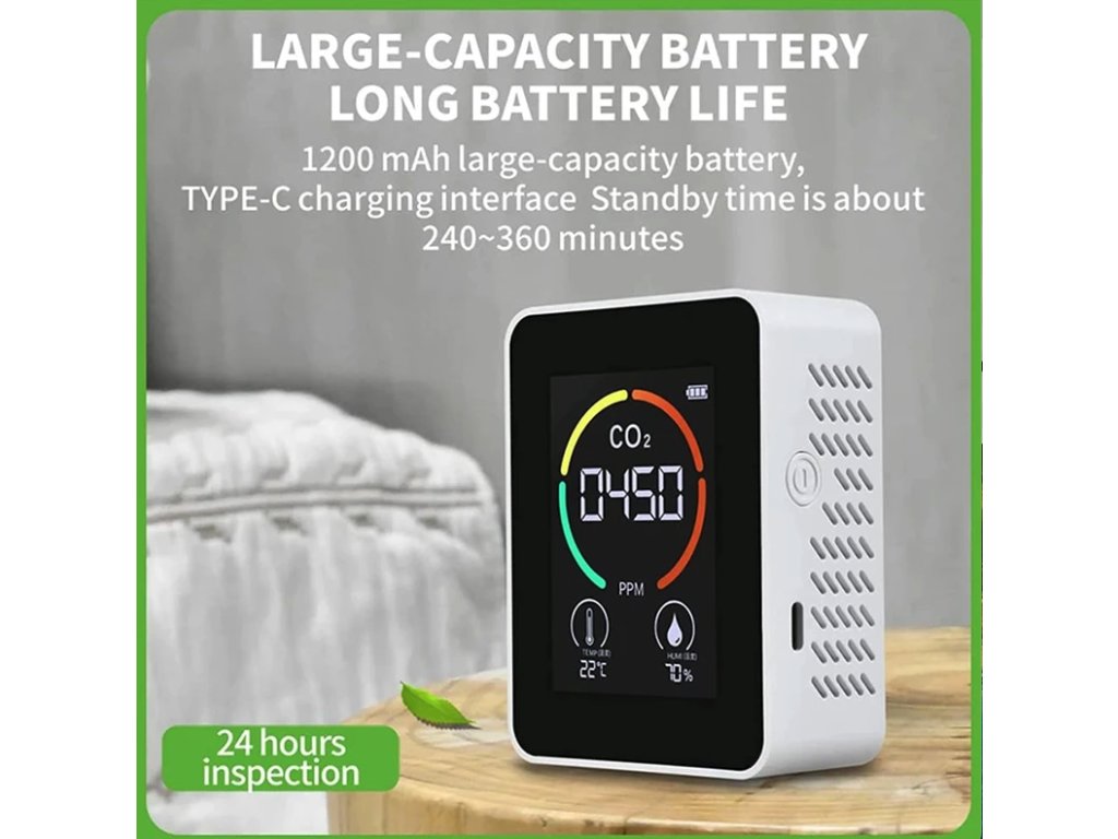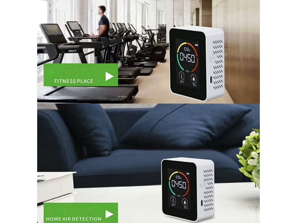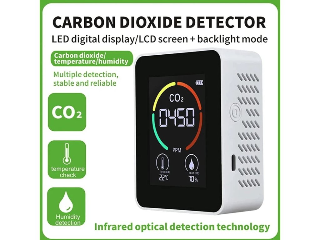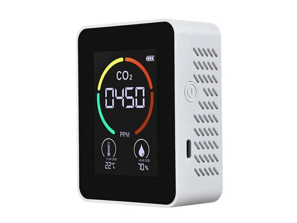 Měřič teploty a vlhkosti, monitor kvality vzduchu, detektor CO2