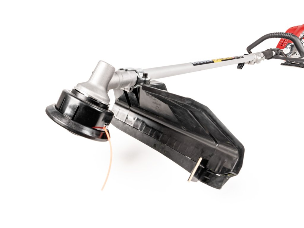- Křovinořez s hlavou pro strunové sečení i ocelovým nožem pro hustší porosty