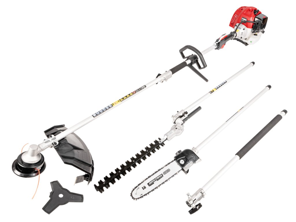 - 3v1 – multifunkční zařízení (křovinořez, nůžky na živý plot, řetězová pila)