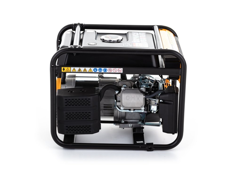 Vzduchem chlazený čtyřtaktní motor o zdvihovém objemu 212 cm3 má velkou 9 l nádrž, která umožňuje dlouhý a bezproblémový provoz až 6 hodin. Generátor se spouští ručně a dodává 230V. Výsledný výkon 3,3 kW (maximální výkon) a 3 kW (jmenovitý výkon) dělá z generátoru výkonného společníka.