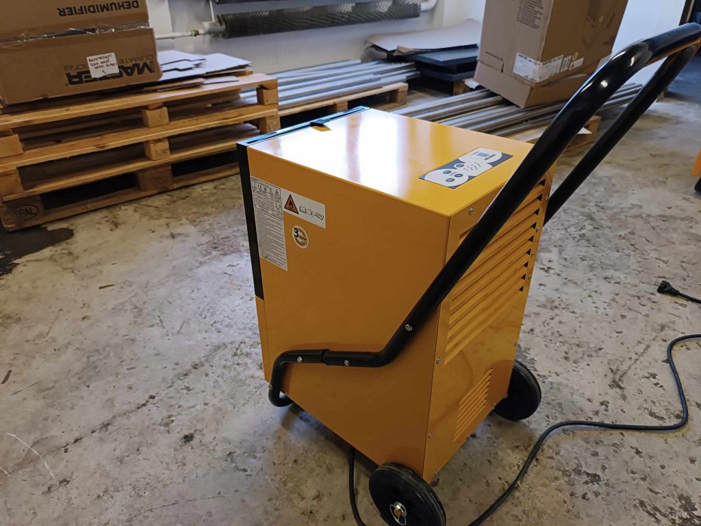 odvlhčovač vzduchu, provedení kovové, zabraňuje tvoření rzí, plísní a skvrn, zlepšují podmínky vysoušení, urychlují vysoušecí proces v objektech poškozených vodou, přístroj se automaticky vypne, když je nádrž plná nebo při špatné poloze odvlhčovače.