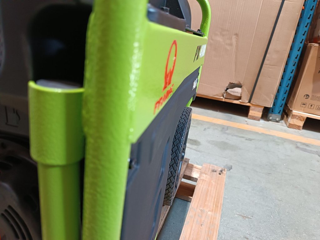 je moderní benzínová elektrocentrála, která je připravena k přesunu tam, kde je potřeba energie. Má pevný a kompaktní rám s integrovanou rukojetí a kolečky, které umožňují snadnou přepravu.