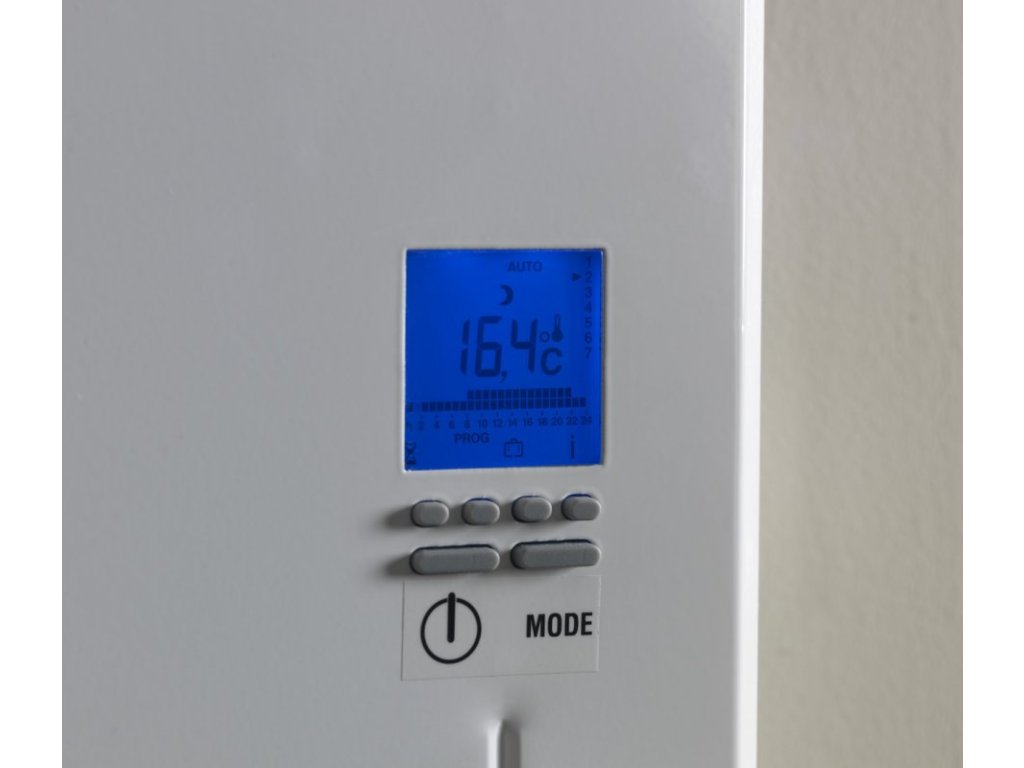 Přímotop s akumulací má individuálně přivařené žebra a jeho povrch je upravený práškovým nástřikem. Barva bílá RAL 9003, hloubka pouze 70 mm. Plynule nastavitelný vestavěný termostat reguluje teplotu v místnosti. Připojovací kabel 1,5 m se zástrčkou, 230 V ~, vč. stojanu.