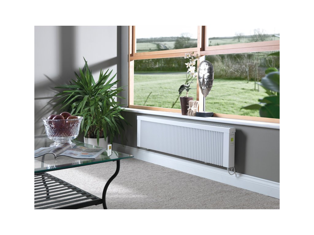 Přímotop s akumulací lze snadno připojit ke standardní elektrické zásuvce nebo ke stávajícímu elektrickému vedení. Dodávají se s držáky pro montáž na zeď, ale můžete je také položit na podpěrné nohy (či kolečka), které jsou součástí volitelného vybavení. Jedná se o topidla s velmi úsporným akumulačním vytápěním, která lze instalovat i pod hluboká okna, protože mají nízkou výšku - pouhých 34cm. Díky těmto parametrům jsou použitelná v zimních zahradách. Všechny naše standardní modely jsou dodávány s vestavěným nebo ručně ovládaným pokojovým termostatem. U plně regulovatelného topného systému, lze tyto topidla provozovat s naším řídicím systémem ECO (s připojením k internetu) a také pokojovými termostaty. Pokud si vyrábíte vlastní elektřinu, lze se připojit přes správce energie TT.