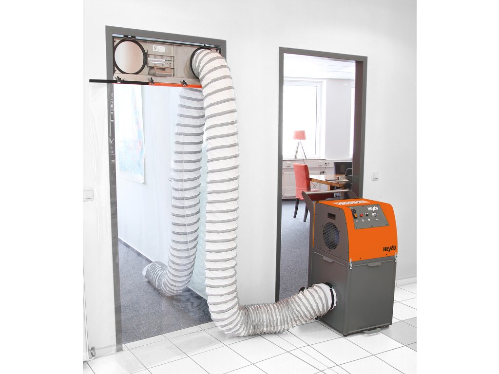- Utěsňuje pracovní prostor: dveřní prvek se rychle a snadno namontuje pomocí rychloupínáku s upínací páskou. Pomocí rolet a plastových fólií DCD-3.0 utěsňuje pracovní/špinavou oblast od obydlených oblastí.