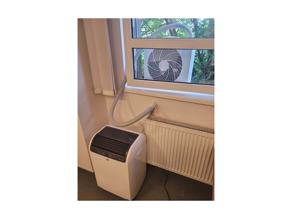Dvoudílná klimatizace má vnitřní a vnější jednotku, přesto nevyžaduje odbornou instalaci a zachovává možnost přístroj kdykoliv operativně přesunout (uklidit). Klimatizace se svojí stavbou podobá klasickým stacionárním jednotkám (splitovým klimatizacím). Vnější část lze postavit na parapet nebo připevnit na stěnu. Hadice mezi oběma jednotkami má průměr necelé 4 cm, takže ji můžete prostrčit přivřeným oknem nebo pro ni připravit průchod ve zdi.