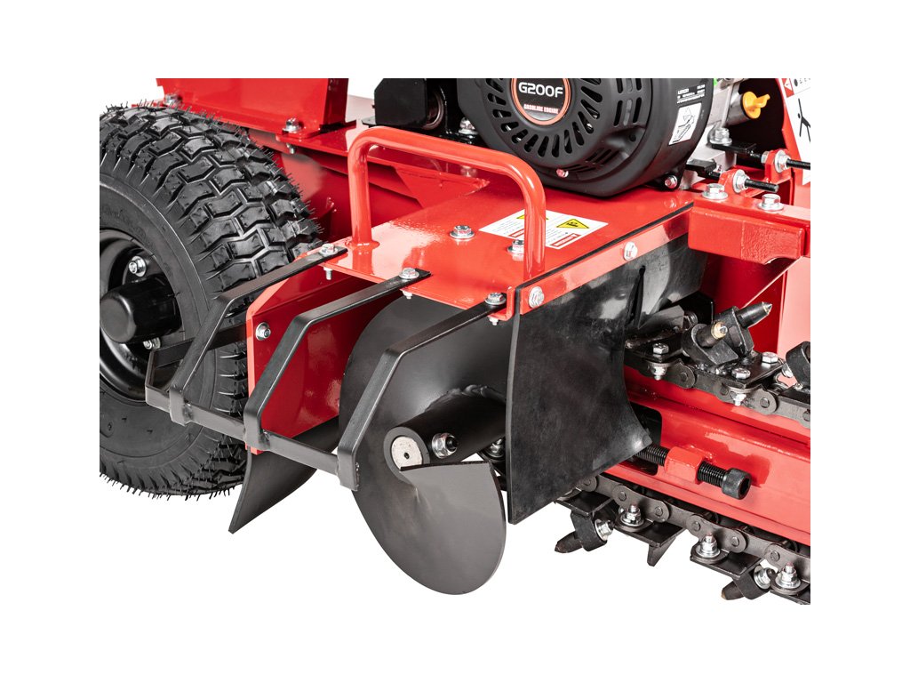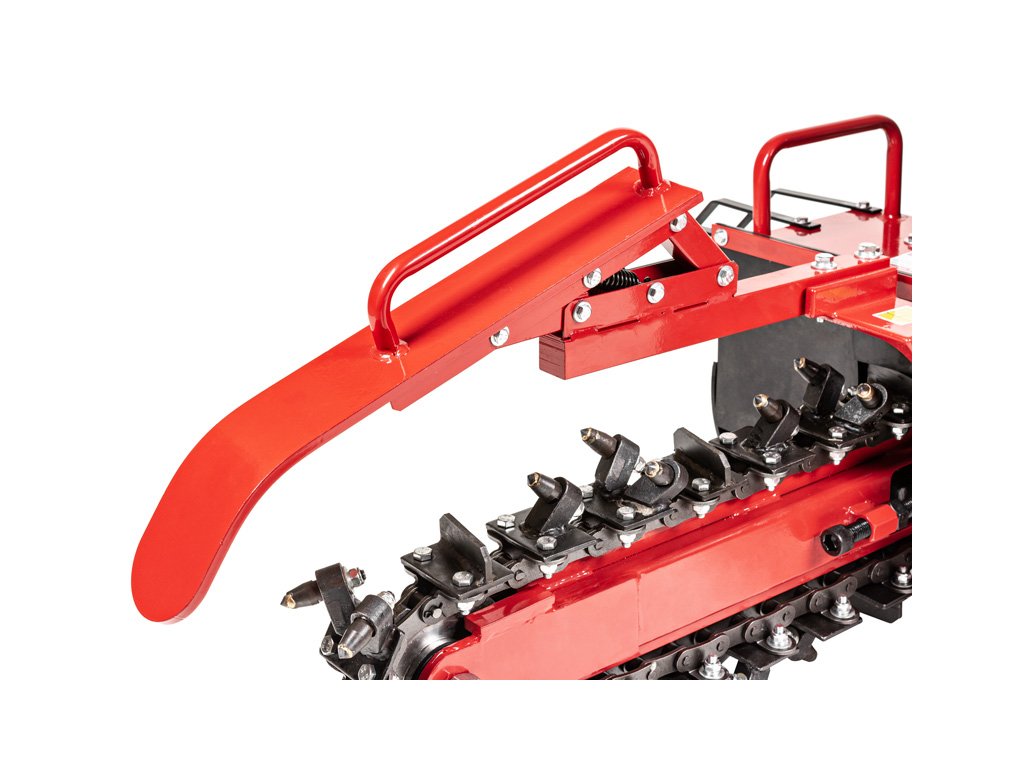 - Díky řetězu s 21 karbidovými zuby a maximální rychlosti 550 m/min rypadlo efektivně zvládne tvrdé i kamenité půdy. Speciální odkládací šnek pomáhá minimalizovat množství vyházené zeminy kolem rýhy a usnadňuje následné zasypání. Stroj je vybaven ergonomicky nastavitelnou rukojetí, která umožňuje pohodlné ovládání, a velkými koly pro snadný pohyb v terénu.