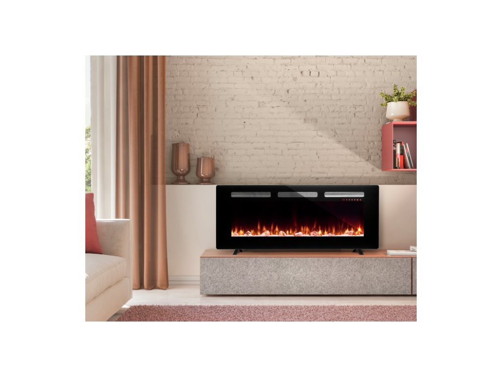 Elektrický krb Sierra 48 s technologií Optiflame® poskytuje autentický pohled na plameny a možnost výběru mezi dřevěnými poleny, akrylovým ledem nebo oblázky. Krb nabízí bezpečné vytápění pomocí ventilátoru s nastavitelnými teplotními úrovněmi. Díky anti-reflexnímu sklu si můžete užít dokonalý pohled bez rušivých odlesků. Ovládání je zajištěno dálkovým ovladačem a aplikací Tuya Smart, která umožňuje nastavit vše pohodlně přes mobilní zařízení.