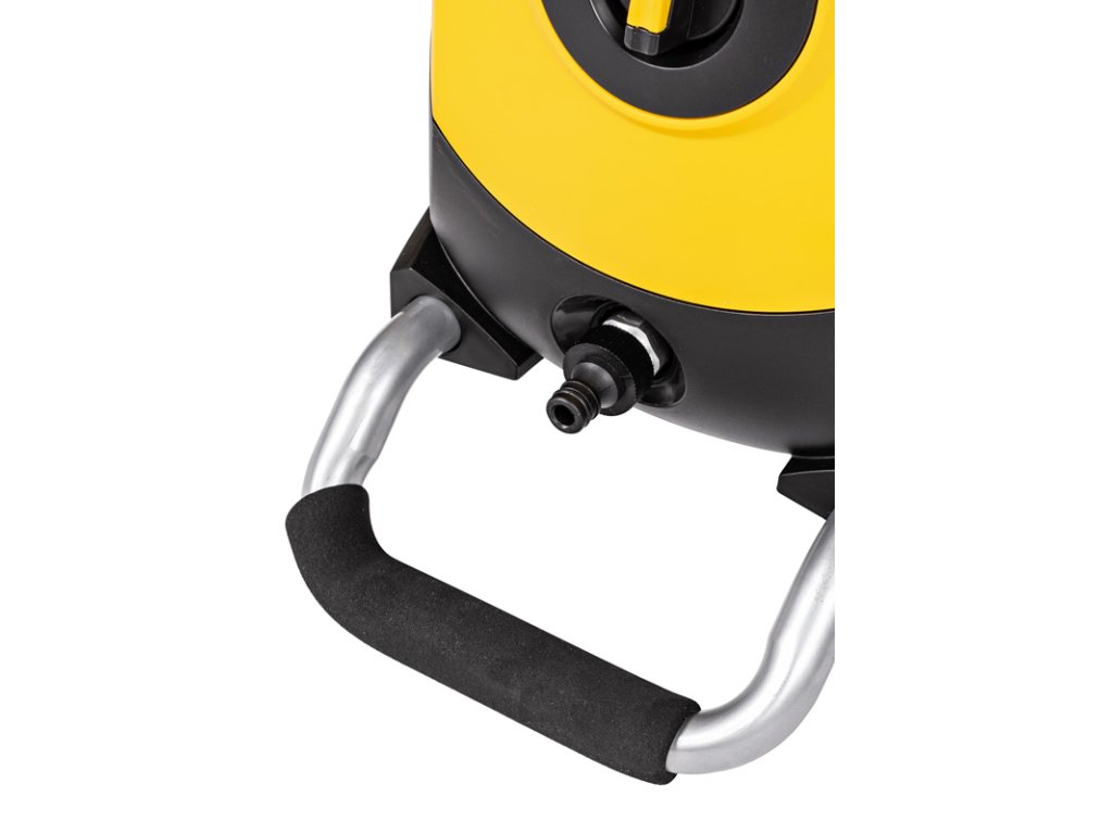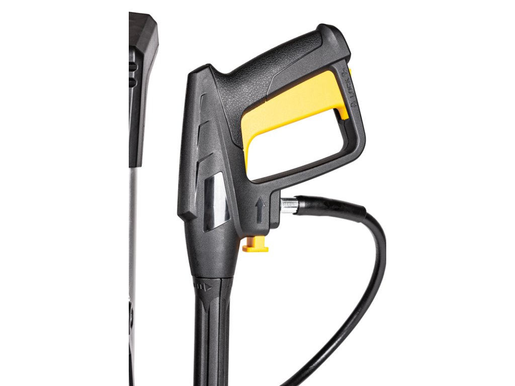- Hliníkové čerpadlo a průtok vody 360 l/h garantují dlouhou životnost a spolehlivost. Myčka je vybavena 10m PVC hadicí, která usnadňuje manipulaci, a její kompaktní design s transportními kolečky umožňuje snadný přesun. Myčka automaticky zapíná a vypíná motor při stisknutí spouště, čímž šetří energii a prodlužuje životnost zařízení.