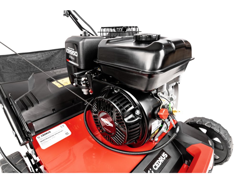 Benzínový vertikutátor Cedrus CEDWR01-B je ideálním pomocníkem pro udržení zdravého a hustého trávníku. Tento model je vybaven spolehlivým motorem Briggs & Stratton CR950 s výkonem 4,1 kW, což zajišťuje dostatečnou sílu pro efektivní vertikutaci i v náročnějších podmínkách. Pracovní šířka 40 cm umožňuje rychlou a efektivní práci.
