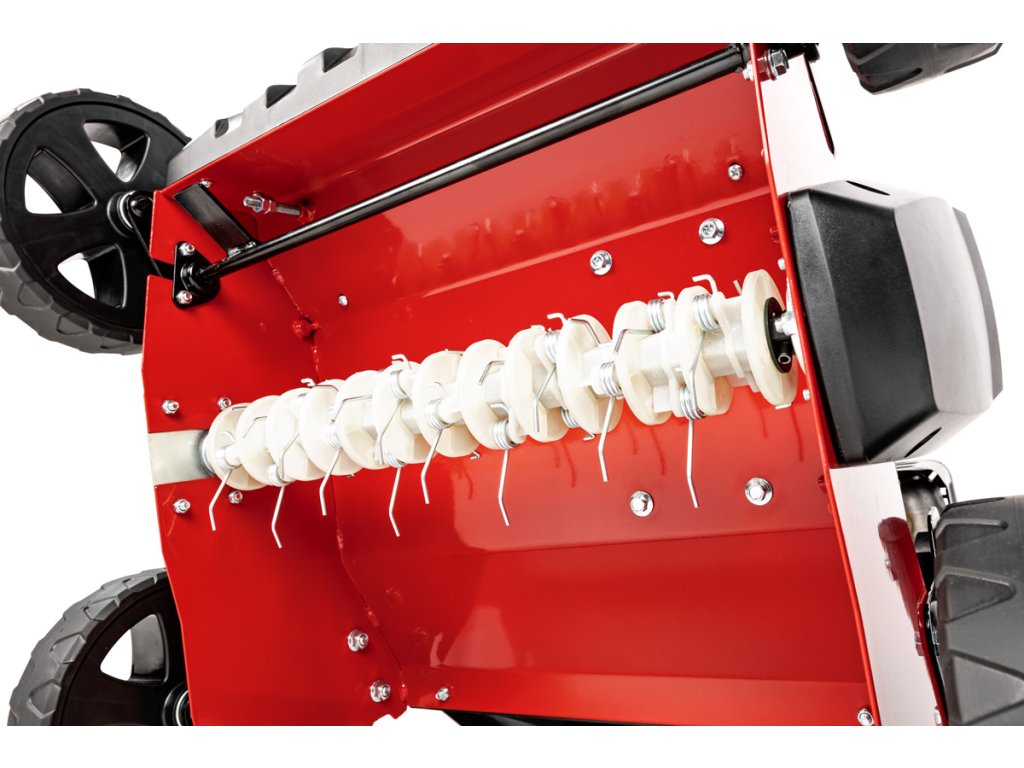- Tento model je ideální pro střední a větší travnaté plochy, kde je potřeba pravidelná vertikutace pro udržení zdravého trávníku.