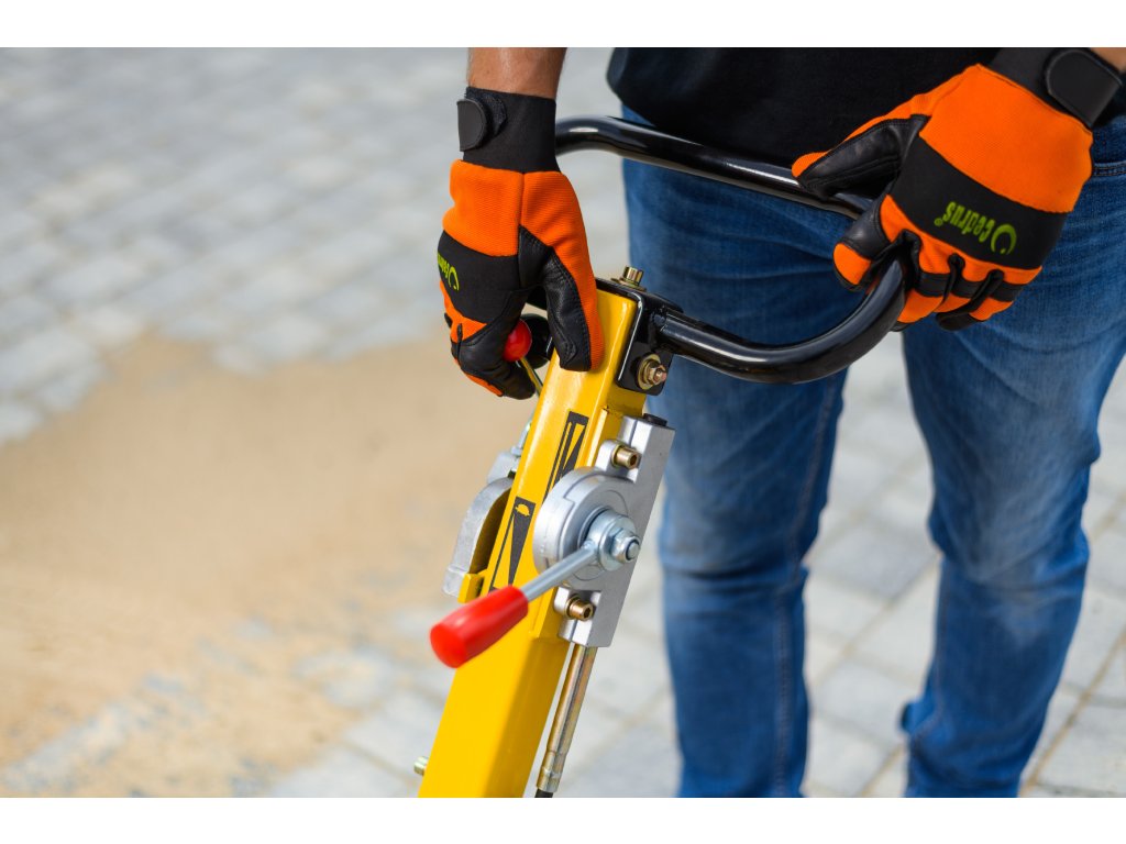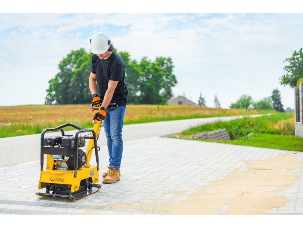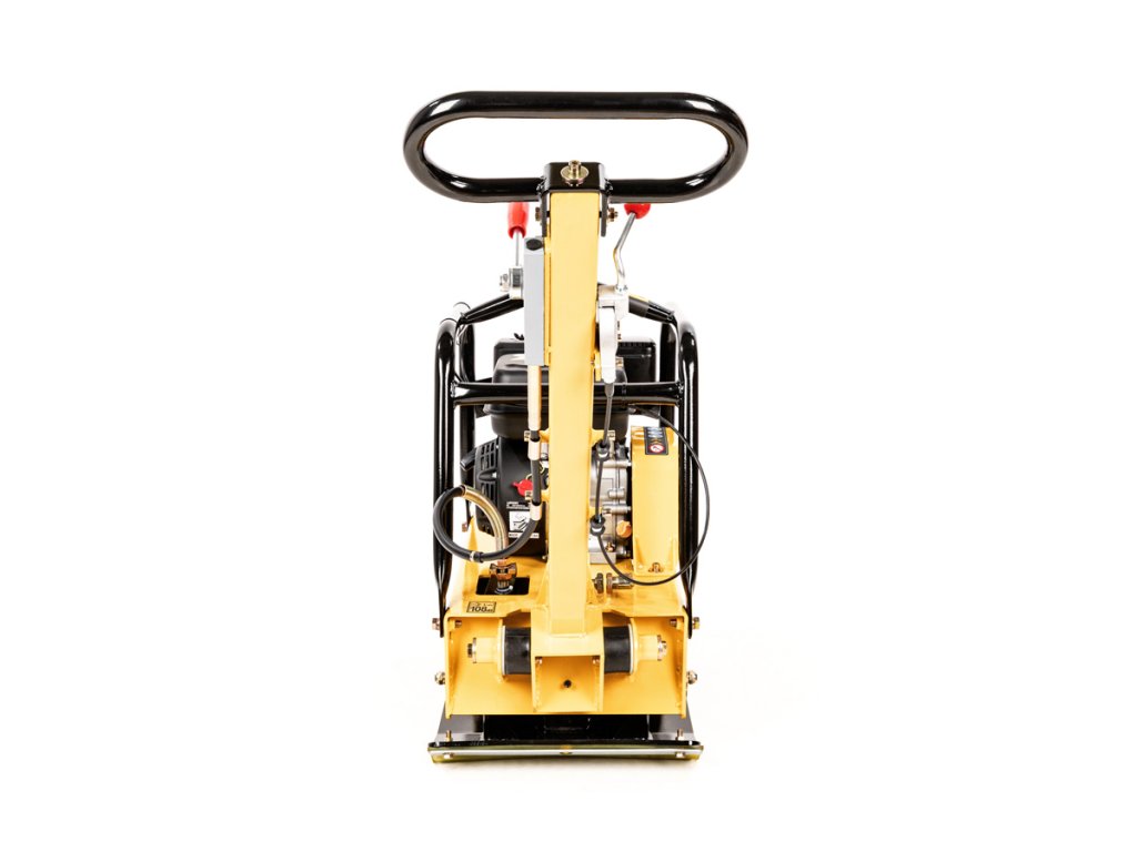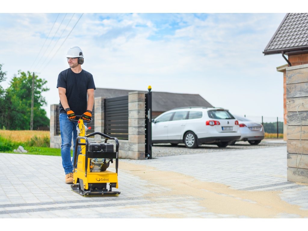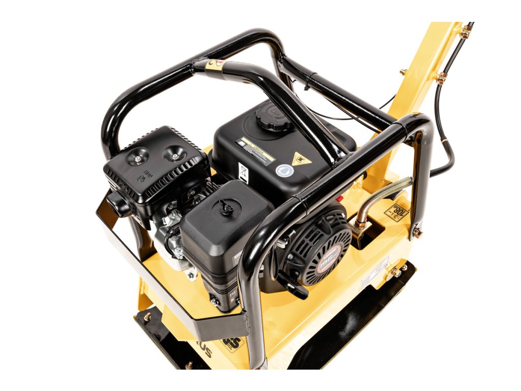 - Vibrační pěch je vybaven odolnou hutnicí deskou o rozměrech 630 × 400 mm, která zajišťuje stabilitu při práci a přesné hutnění povrchů. Systém vibrací 4 300 vpm umožňuje rovnoměrné zpracování povrchů a hluboké zhutnění až 30 cm.