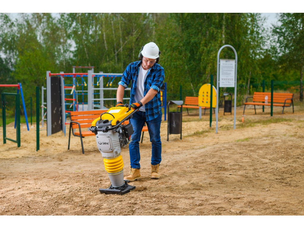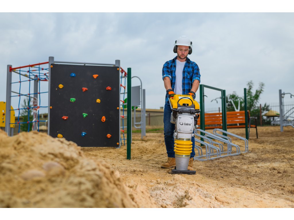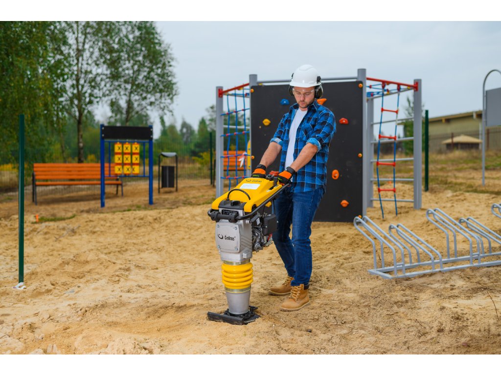 Vibrační pěch Cedrus CEDST01 je profesionální zařízení určené pro efektivní hutnění půdy na stavbách, zejména při přípravě základů, cest a jiných stavebních povrchů.