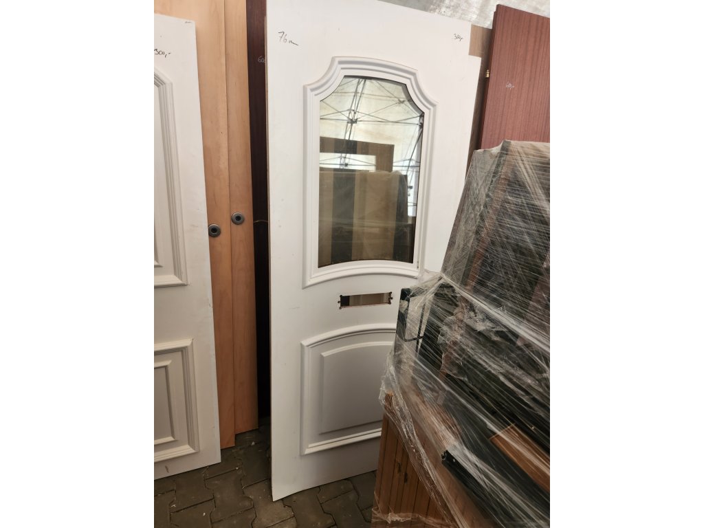 Výplň do vstupních dveří – bílá s dekoračním sklem (šířka 76 cm)