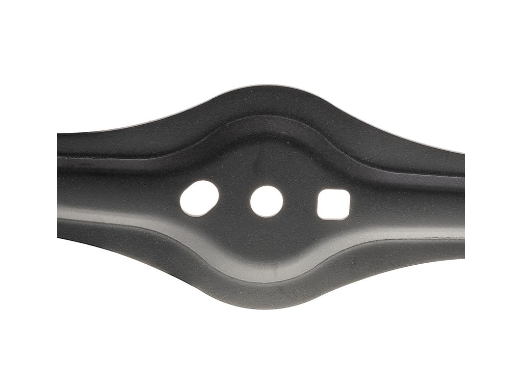 - Je vybaven centrálním montážním otvorem o průměru 14 mm a dvěma bočními otvory – 13,5 × 17,5 mm a 13,5 × 13,5 mm, vzdálenými 60 mm od sebe (měřeno střed–střed). Nůž je vyroben z robustní kalené oceli, která odolá opotřebení, nárazům i deformaci.
