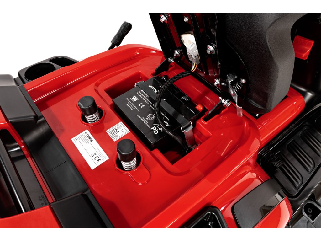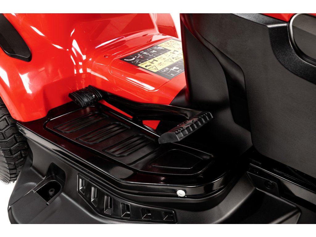- Srdcem traktoru je čtyřtaktní motor Loncin LC2P73F o výkonu 10,3 kW (2600 ot./min) a objemu 586 cm³, který zajišťuje silný výkon a dlouhou životnost. Elektromagnetické zapínání nožů a možnost sečení i při couvání zvyšují pohodlí a efektivitu práce.