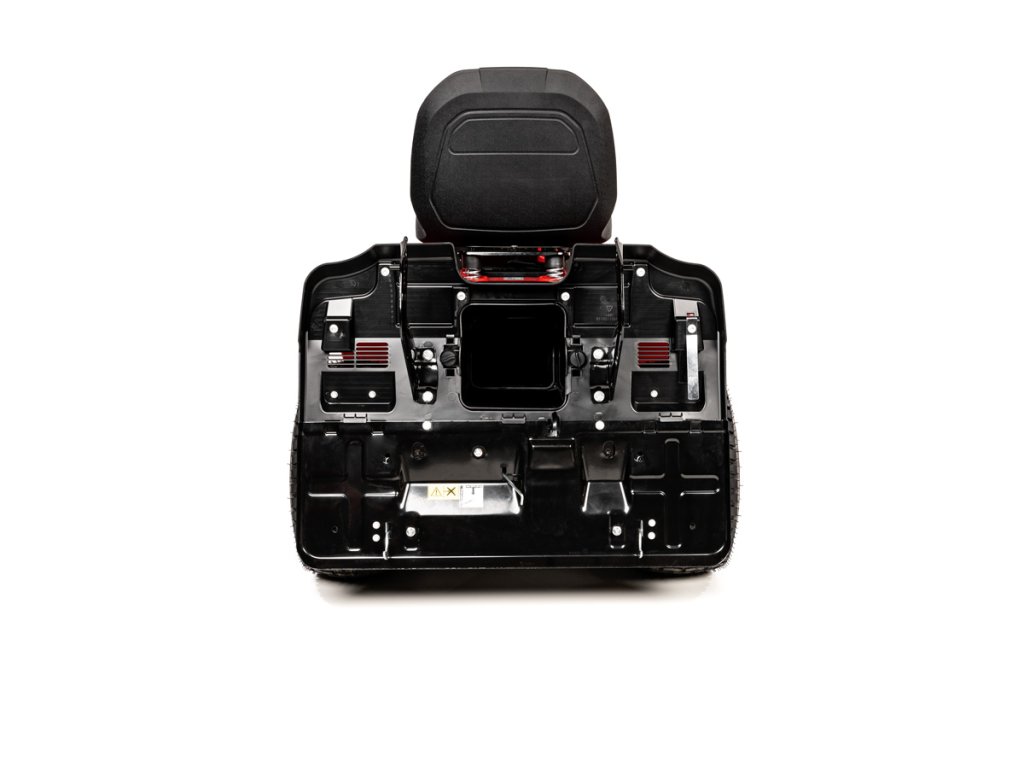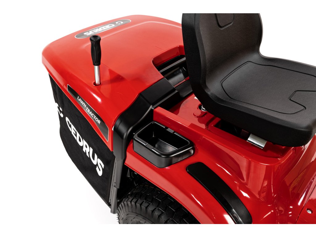 - LED osvětlení umožňuje práci i za snížené viditelnosti. Senzor plného koše upozorní na nutnost jeho vyprázdnění, což minimalizuje přerušování sečení. Traktor je navíc vybaven zadním závěsem pro možnost připojení přívěsu.