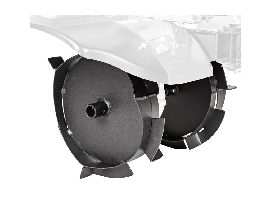 Tato sada robustních ocelových kol s lopatkami je určena pro kultivátory Cedrus GL1000N-3 a GL09. Kola výrazně zlepšují trakci při práci s pluhem, hrobkovačem nebo plečkou. Široké záběrové lopatky (6 ks na každém kole) se zařezávají do půdy a brání prokluzu.